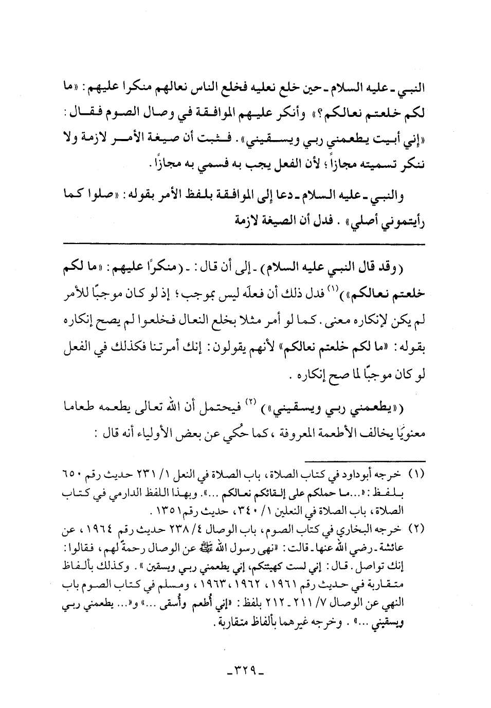 (وقد قال النبي عليه الصلاة والسلام) - إلى أن قال:- (منكرًا عليهم: "ما لكم خلعتم نعالكم")، فدل ذلك أن فعله ليس بموجب؛ إذ لو كان موجبًا للأمر لم يكن لإنكاره معنى. كما لو أمر مثلاُ بخلع النعال فخلعوا لم يصح إنكاره بقوله: "ما لكم خلعتم نعالكم" لأنهم يقولون: إنك أمرتنا فكذلك في الفعل لو كان موجبًا لما صح إنكاره.