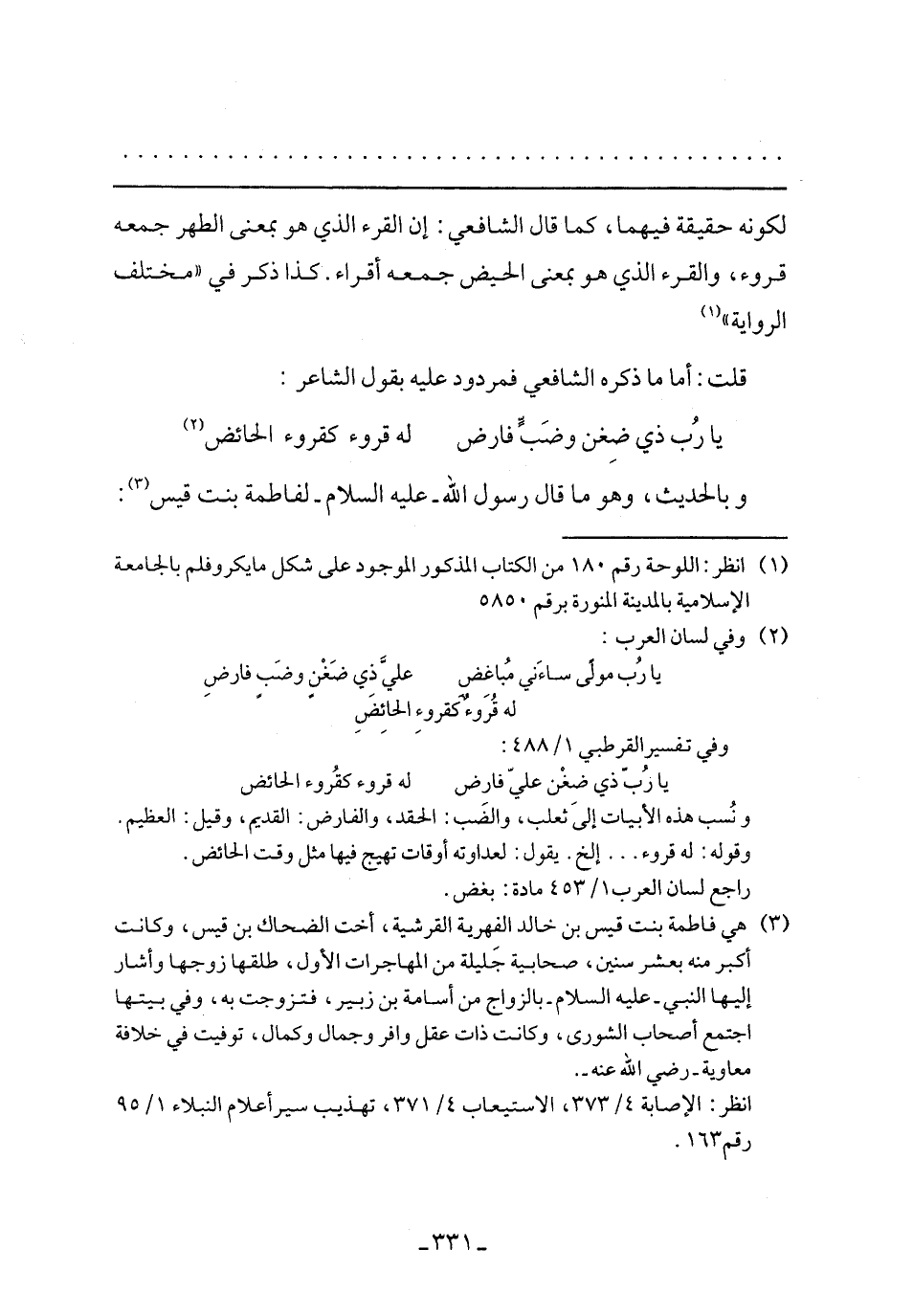 قلت: أما ما ذكره الشافعي فمردود عليه بقول الشاعر: