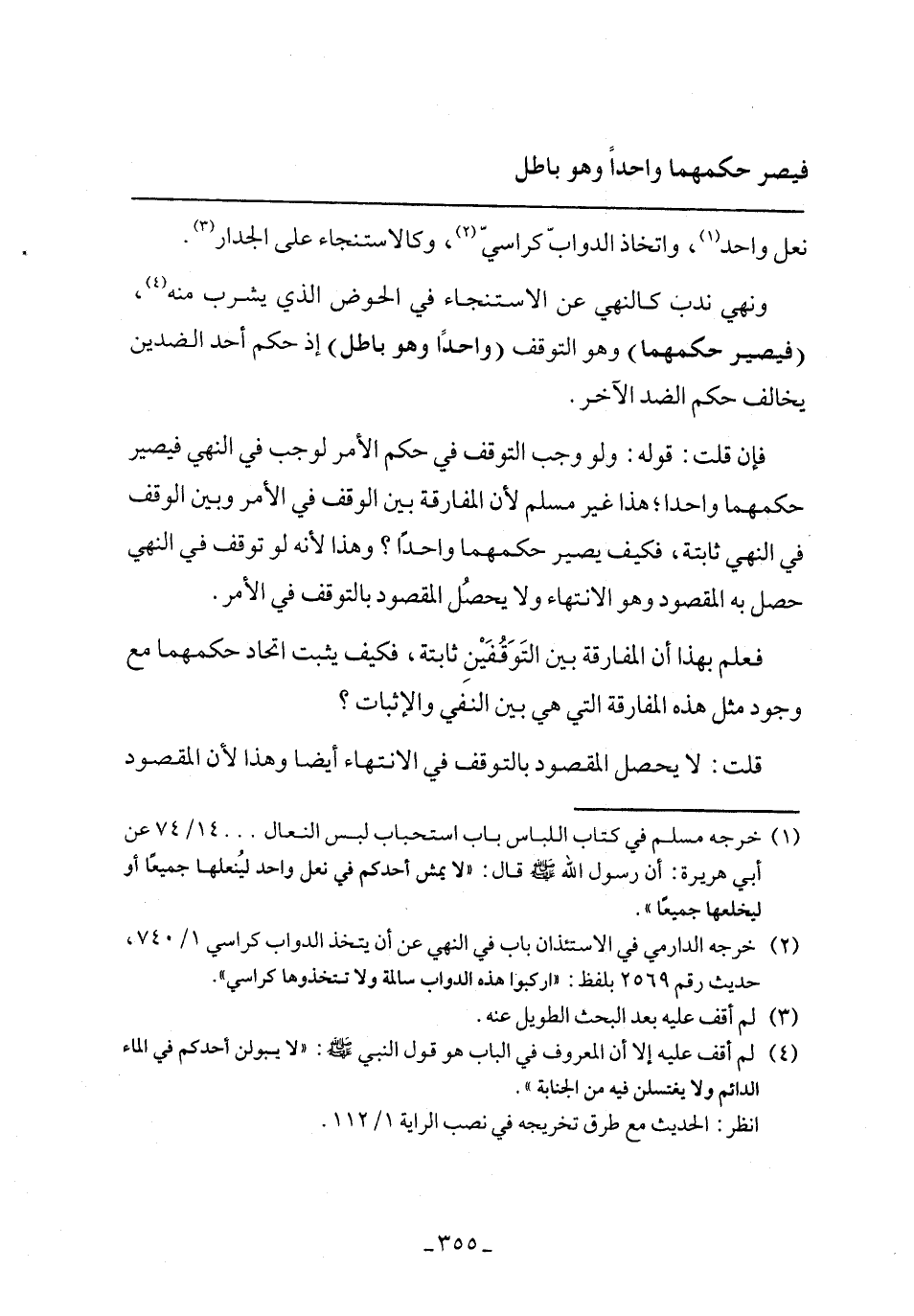 نعل واحد، واتخاذ الدواب كراسي، وكالاستنجاء علي الجدار.