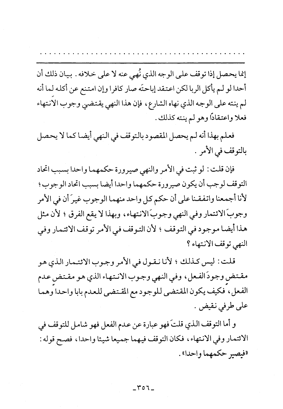 فعلم بهذا أنه لم يحصل المقصود بالتوقف في النهي أيضًا كما لا يحصل بالتوقف في الأمر.