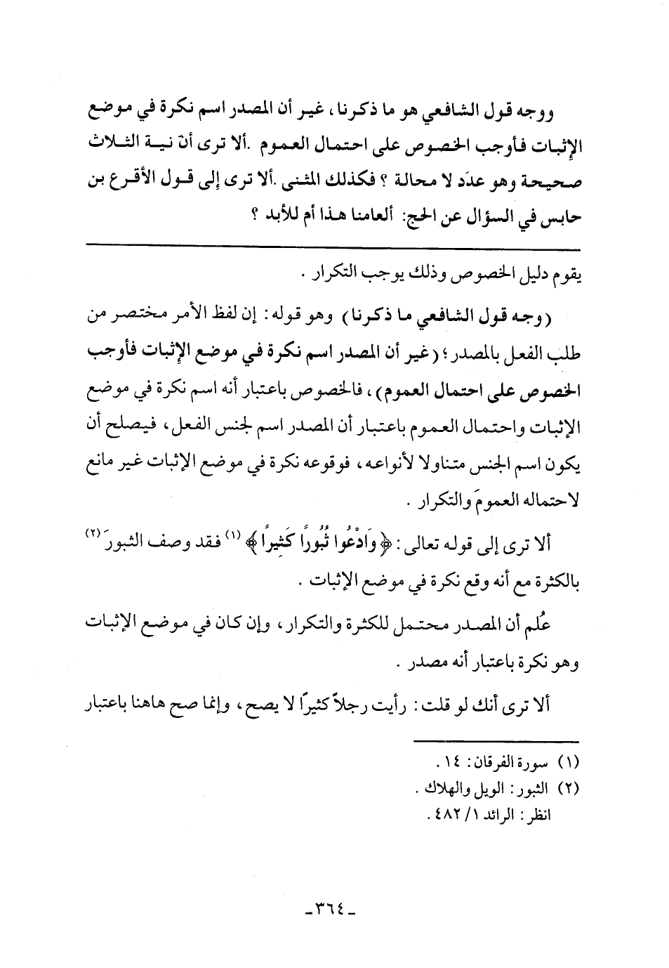 يقوم دليل الخصوص وذلك يوجب التكرار.