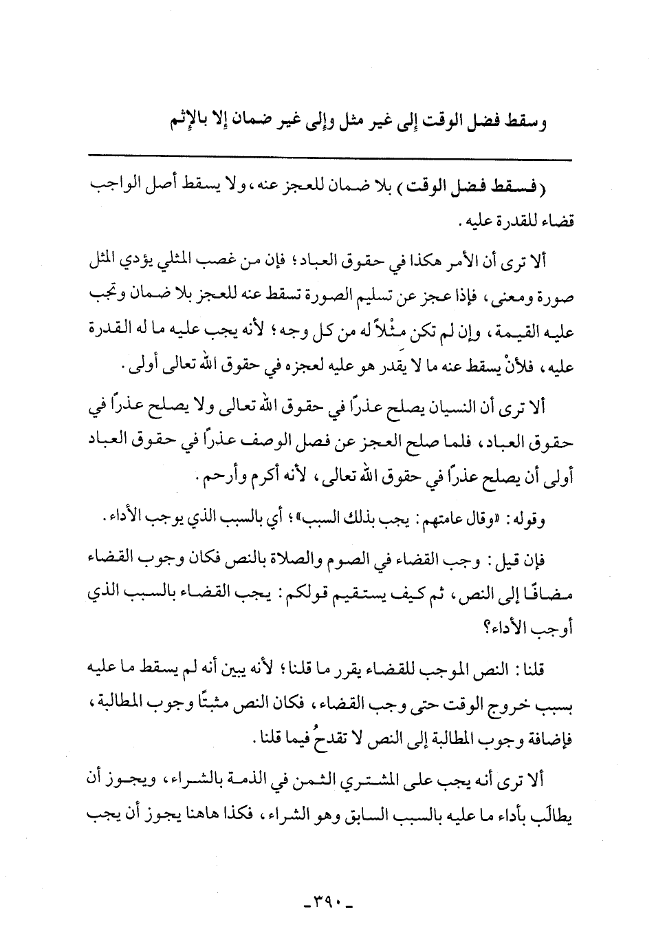 (فسقط فضل الوقت) بلا ضمان للعجز عنه، ولا يسقط أصل الواجب قضاء للقدرة عليه.