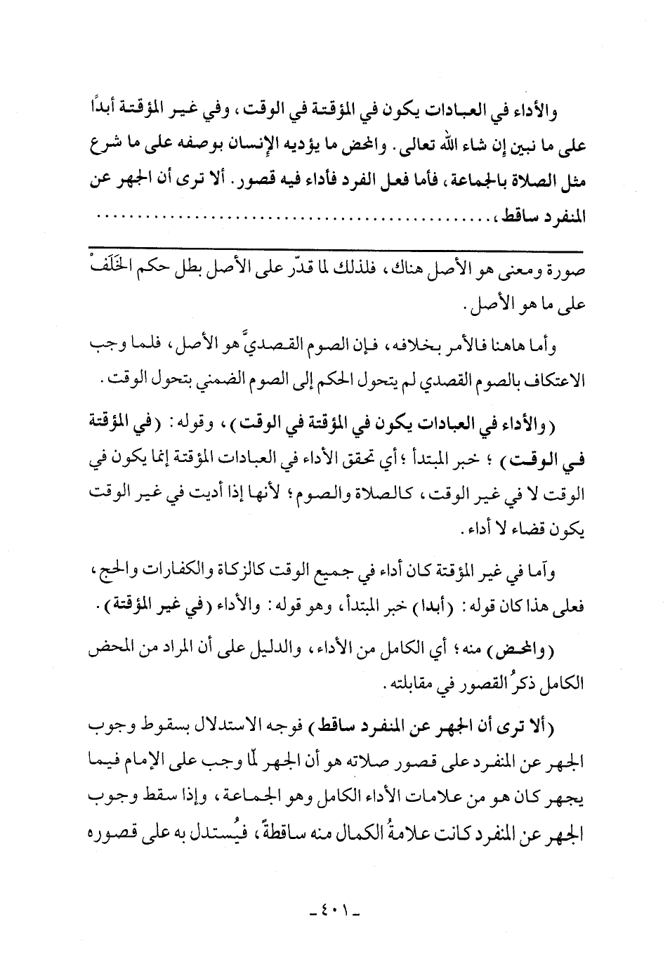 (ألا ترى أن الجهر عن المنفرد ساقط) فوجه الاستدلال بسقوط وجوب الجهر عن المنفرد على قصور صلاته هو أن الجهر لما وجب على الإمام فيما يجهر كان هو من علامات الأداء الكامل وهو الجماعة، وإذا سقط وجوب الجهر عن المنفرد كانت علامة الكمال منه ساقطًا، فيستدل به على قصوره