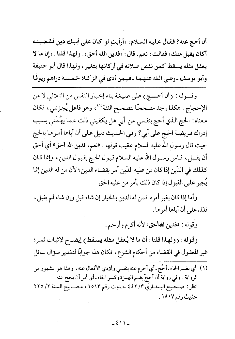 وقوله: (أن أحج) على صيغة بناء إخبار النفس من الثلاثي لا من الإحجاج. هكذا وجد مصححًا بتصحيح الثقة، وهو فاعل يجزئني، فكان معناه: الحج الذي أحج بنفسي عن أبي هل يكفيني ذلك عما يهمني بسبب إدراك فريضة الحج على أبي؟ وفي الحديث دليل على أن أباها أمرها بالحج حيث قال رسول الله عليه السلام عقيب قولها: ((نعم، فدين الله أحق)) أي أحق أن يقبل، قاس رسول الله عليه السلام قبول الحج بقبول الدين، وإنما كان كذلك في الدين إذا كان من عليه الدين أمر بقضاء الدين؛ لأن من له الدين إنما يجبر على القبول إذا كان ذلك بأمر من عليه الحق.