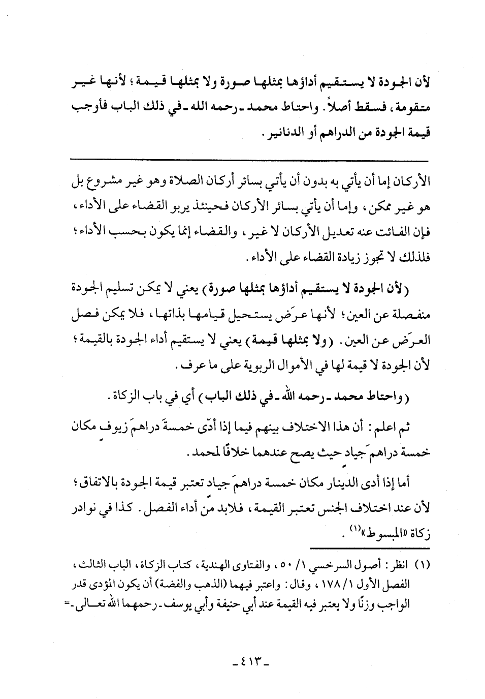 أما إذا أدى الدينار مكان خمسة دراهم جياد تعتبر قيمة الجودة بالاتفاق؛ لأن عند اختلاف الجنس تعتبر القيمة، فلابد من أداء الفصل. كذا في نوادر زكاة ((المبسوط)).