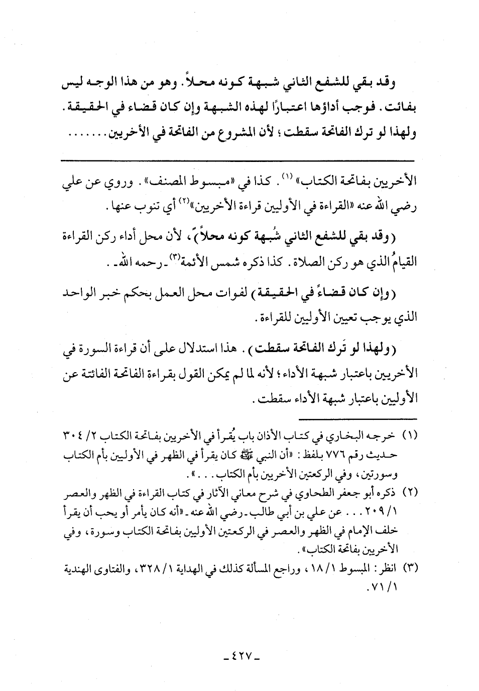 (وقد بقى للشفع الثاني شبهة كونه محلًا)، لأن محل أداء ركن القراءة القيام الذي هو ركن الصلاة. كذا ذكره شمس الأئمة- رحمه الله-.