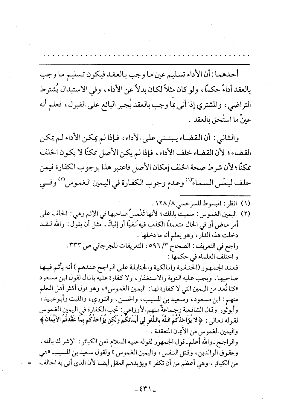 أحدهما: أن الأداء تسليم عين ما وجب بالعقد فيكون تسليم ما وجب بالعقد أداء حكمًا، ولو كان مثلًا لكان بدلًا عن الأداء، وفي الاستبدال يشترط التراضي، والمشتري إذا أتى بما وجب يجبر البائع على القبول، فعلم أنه عين ما استحق بالعقد.