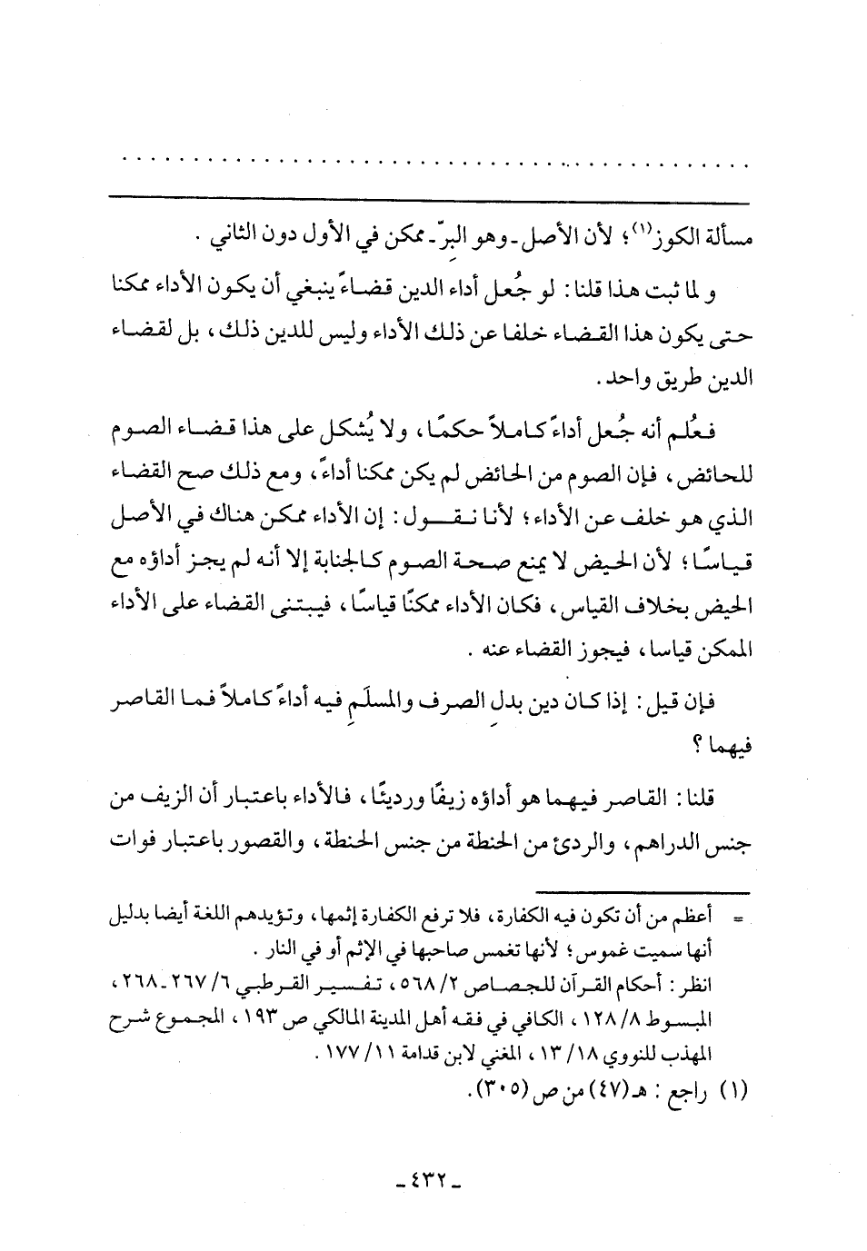 ولما ثبت هذا قلنا: لو جعل أداء الدين قضاء ينبغي أن يكون الأداء ممكنًا حتى يكون هذا القضاء خلفًا عن ذلك الأداء وليس للدين ذلك، بل لقضاء الدين طريق واحد.