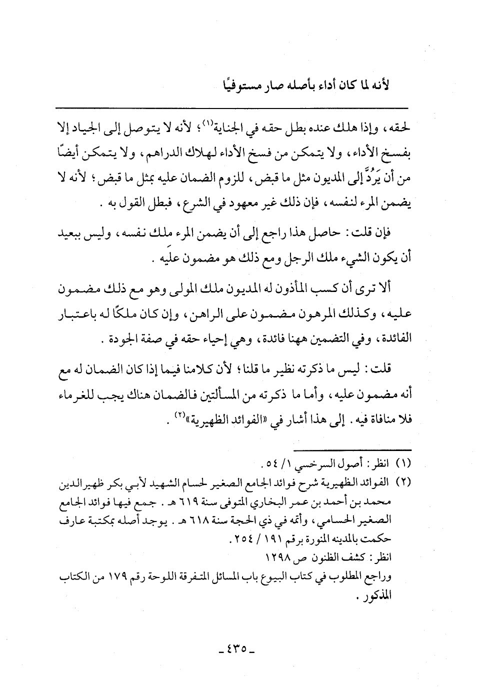 لحقه، وإذا هلك عنده بطل حقه في الجناية؛ لأنه لا يتوصل إلى الجياد إلا بفسخ الأداء، ولا يتمكن من فسخ الأداء لهلاك الدراهم، ولا يتمكن أيضًا من أن يرد إلى المديون مثل ما قبض، للزوم الضمان عليه بمثل ما قبض؛ لأنه لا يضمن المرء لنفسه، فإن ذلك غير معهود في الشرع، فبطل القول به.