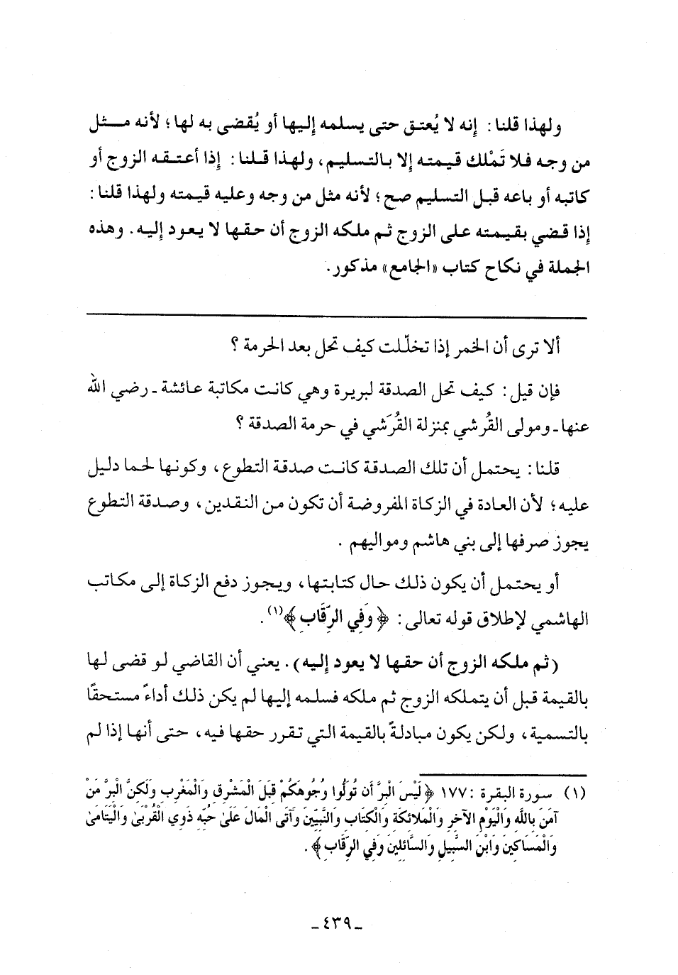 فإن قيل: طيف تحل الصدقة لبريرة وهي كانت مكاتبة عائشة- رضي الله عنها- ومولى القرشي بمنزلة القرشي في حرمة الصدقة؟