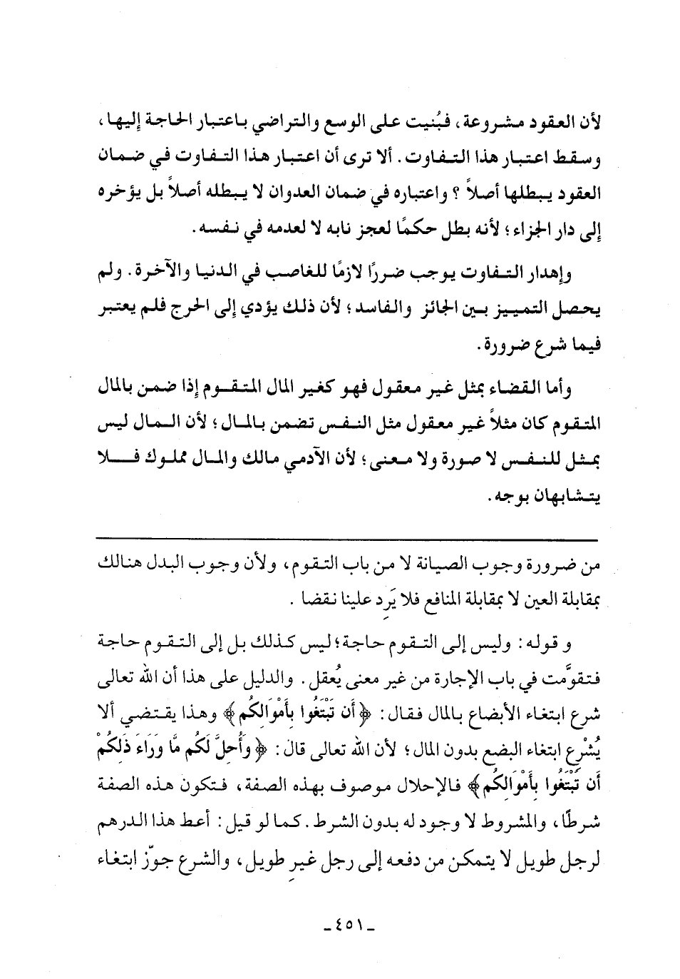 من ضرورة وجوب الصيانة لا من باب التقوم، ولأن وجوب البدل هنالك بمقابلة العين لا بمقابلة المنافع فلا يرد علينا نقضًا.