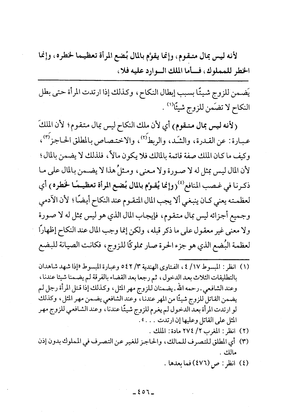 (لأنه ليس بمال متقوم) أي لأن ملك النكاح ليس بمال متقوم؛ لأن الملك عبارة: عن القدرة، والشد، والربط، والاختصاص بالمطلق الحاجز، وكيف ما كان الملك صفة قائمة بالمالك فلا يكون مالًا، فلذلك لا يضمن بالمال؛ لأن المال ليس بمثل له لا صورة ولا معنى، ومثل هذا لا يضمن بالمال على ما ذكرنا في غصب المنافع (وإنما يقوم بالمال بضع المرأة تعظيمًا لخطره) أي لعظمته يعني كان ينبغي ألا يجب المال المتقوم عند النكاح أيضًا؛ لأن الآدمي وجميع أجزائه ليس بمال متقوم، فإيجاب المال الذي هو ليس بمثل له لا صورة ولا معنى غير معقول على ما ذكر قبله، ولكن إنما وجب المال عند النكاح إظهارًا لعظمة البضع الذي هو جزء الحرة صار مملوكًا للزوج، فكانت الصيانة للبضع