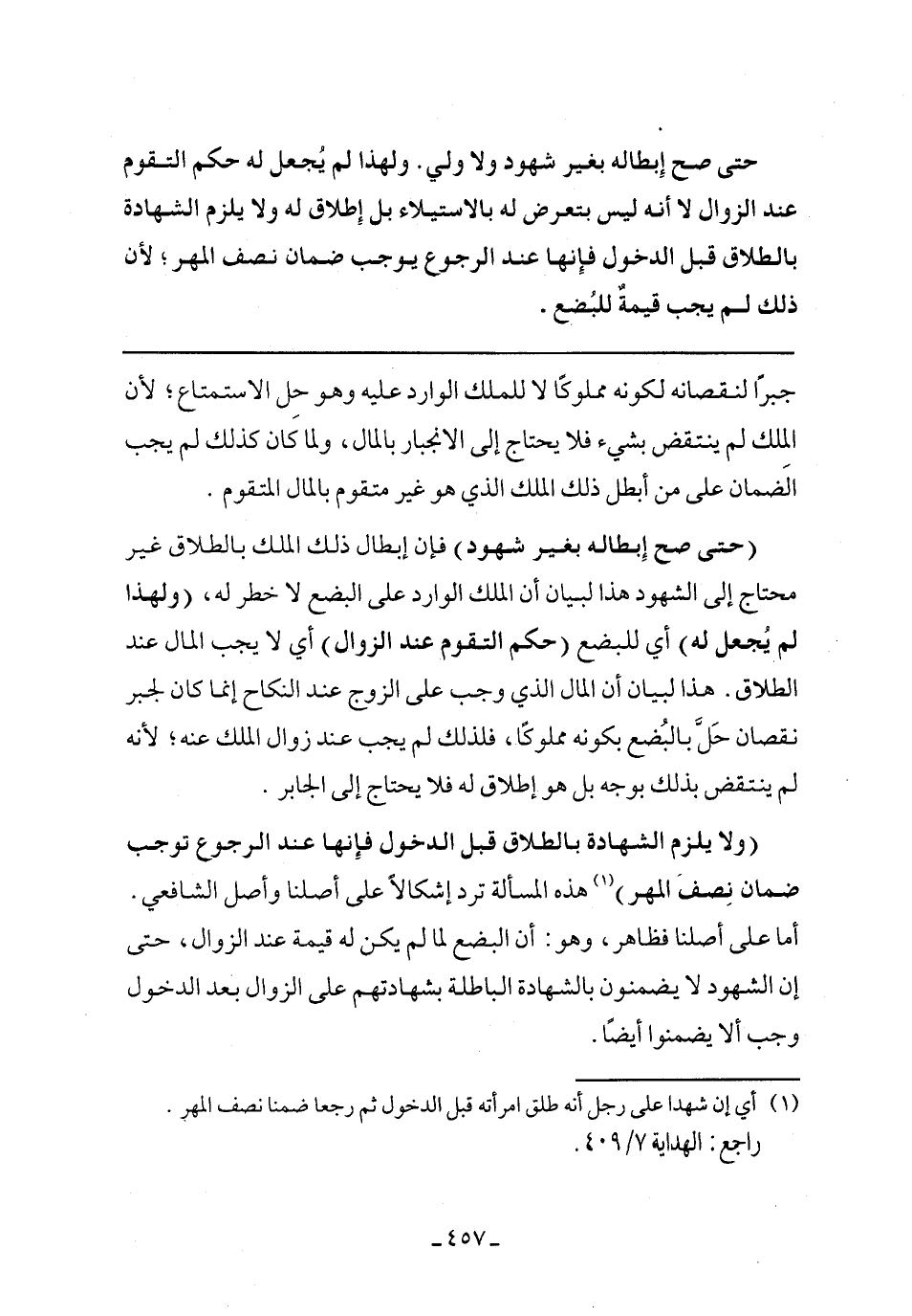 (حتى صح إبطاله بغير شهود) فإن إبطال ذلك الملك بالطلاق غير محتاج إلى الشهود هذا لبيان أن الملك الوارد على البضع لا خطر له، (ولهذا لم يجعل له) أي للبضع (حكم التقوم عند الزوال) أي لا يجب المال عند الطلاق. هذا لبيان أن المال الذي وجب على الزوج عند النكاح إنما كان لجبر نقصان حل بالبضع بكونه مملوكًا، فلذلك لم يجب عند زوال الملك عنه؛ لأنه لم ينتقض بذلك بوجه بل هو إطلاق له فلا يحتاج إلى الجابر.