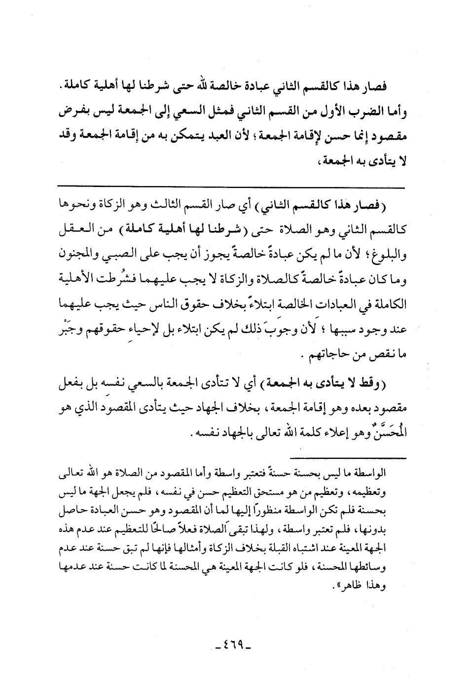 (فصار هذا كالقسم الثاني) أي صار القسم الثالث وهو الزكاة ونحوها كالقسم الثاني وهو الصلاة حتى (شرطنا لها أهلية كاملة) من العقل والبلوغ؛ لأن ما لم يكن عبادة خالصة يجوز أن يجب على الصبي والمجنون وما كان عبادة خالقة كالصلاة والزكاة لا يجب عليهما فشرطت الأهلية الكاملة في العبادات الخالصة ابتلاء بخلاف حقوق الناس حيث يجب عليهما عند وجود سببها؛ لأن وجوب ذلك لم يكن ابتلاء بل لإحياء حققهم وجبر ما نقص من حاجاتهم.