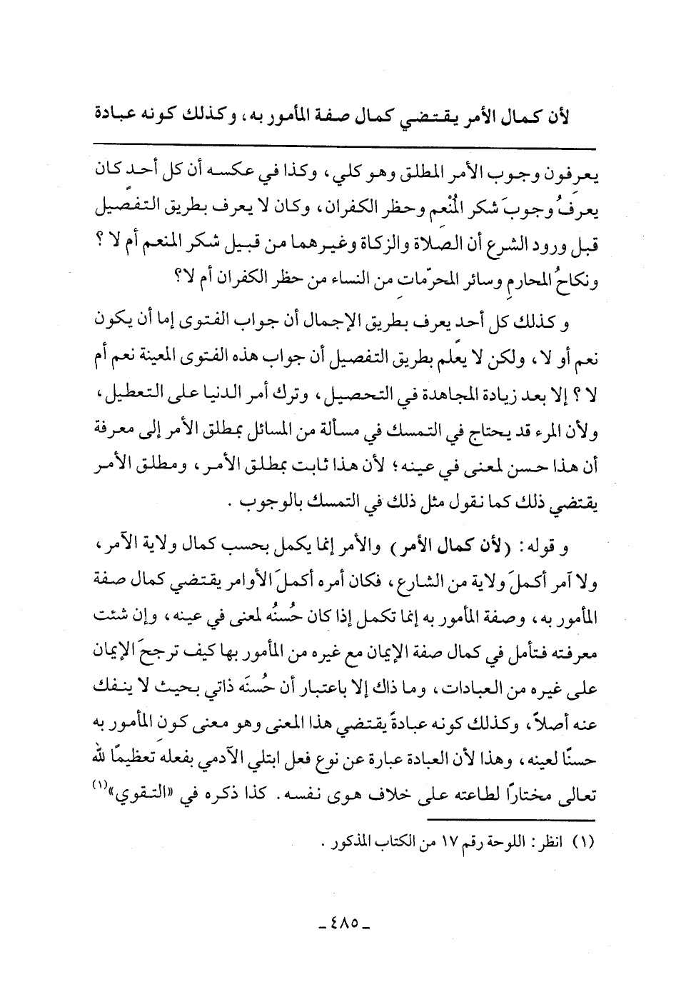 وكذلك كل أحد يعرف بطريق الإجمال أن جواب الفتوى إما أن يكون نعم أم لا، ولكن لا يعلم بطريق التفصيل أن جواب هذه الفتوى المعينة نعم أم لا؟ إلا بعد زيادة المجاهدة في التحصيل، وترك أمر الدنيا في التعطيل، ولأن المرء قد يحتاج في التمسك في مسألة من المسائل بمطلق الأمر إلى معرفة أن هذا حسن لمعنى في عينه؛ لأن هذا ثابت بمطلق الأمر، ومطلق الأمر يقتضي ذلك كما نقول مثل ذلك في التمسك بالوجوب.