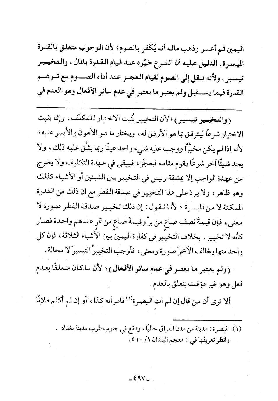 ألا ترى أن من قال إن لم آت البصرة فامرأته كذا، أو لم أكلم فلاناً