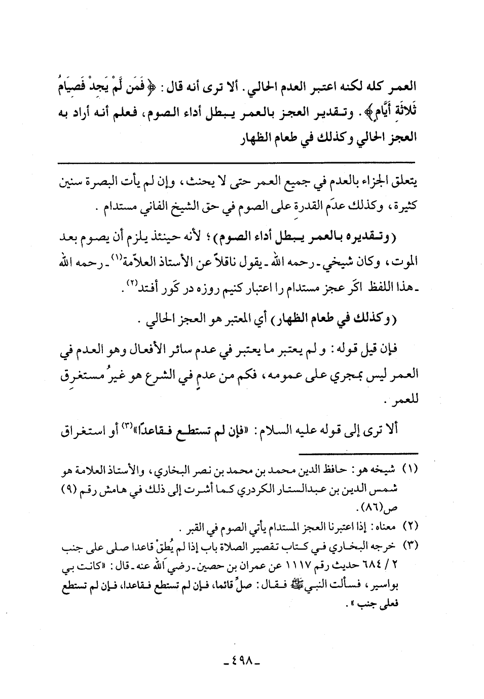 ألا ترى إلى قوله عليه السلام: (فإن لم تستطع فقاعداً) أو استغراق
