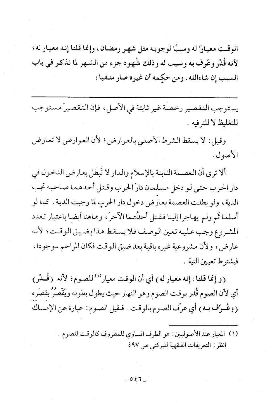 (وإنما قلنا: إنه معيار له) أي أن الوقت معيار للصوم؛ لأنه (قُدر) أي لأن الصوم قٌدر بوقت الصوم وهو النهار حيث يطول ويقصر بقصره (وعرف به) أي عرف الصوم بالوقت. فقيل الصوم: عبارة عن الإمساك