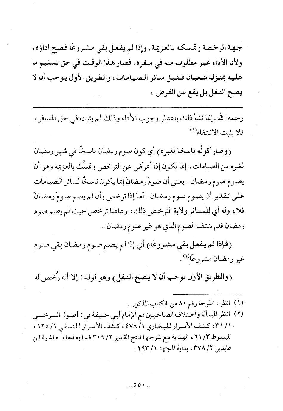 (وصار كونه ناسخًا لغيره) أي كون صوم رمضان ناسخًا في شهر رمضان لغيره من الصيامات، إنما يكون إذا أعرض عن الترخص وتمسك بالعزيمة وهو أن يصوم صوم رمضان. يعني أن صوم رمضان إنما يكون ناسخًا لسائر الصيامات على تقدير أن يصوم صوم رمضان. أما إذا ترخص بأن لم يصم صوم رمضان فلا، وله أي للمسافر ولاية الترخص ذلك، وهاهنا ترخص حيث لم يصم صوم رمضان فلم ينتف الصوم الذي هو غير صوم رمضان.
