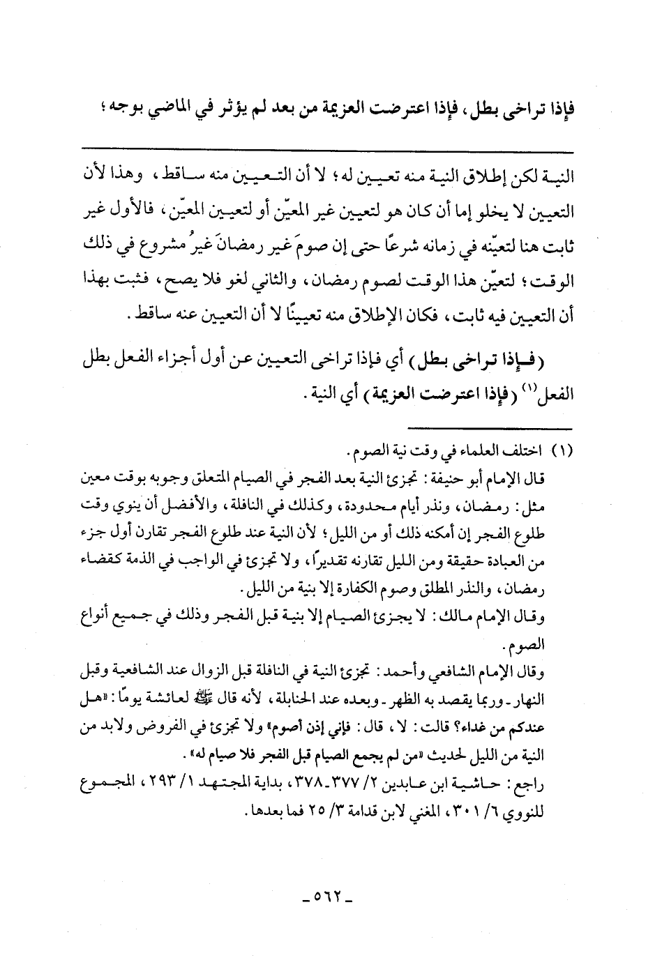 (فإذا تراخى بطل) أي فإذا تراخى التعيين عن أول أجزاء الفعل بطل الفعل (فإذا اعترضت العزيمة) أي النية.