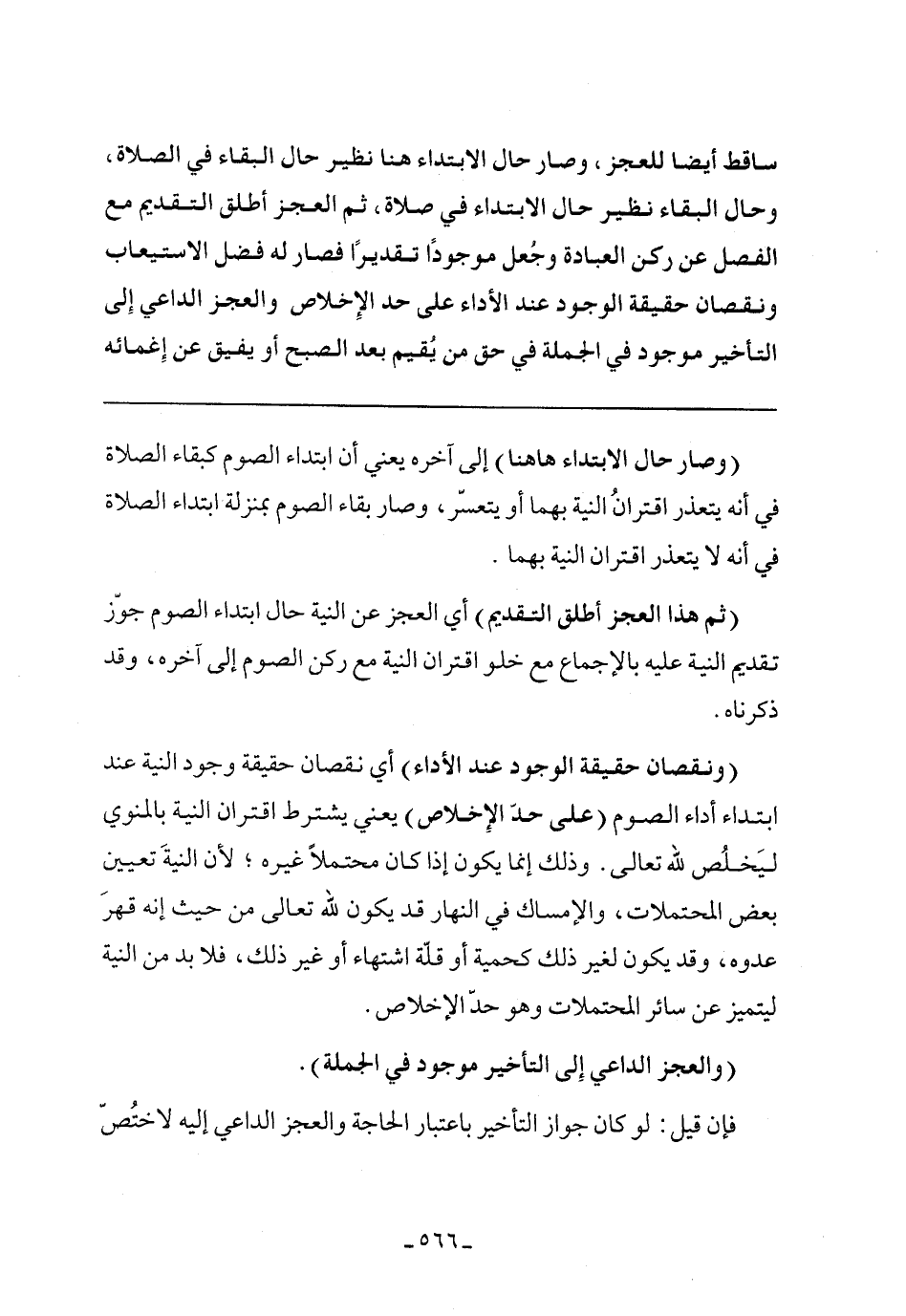 (ونقصان حقيقة الوجود عند الأداء) أي نقصان حقيقة وجود النية عند ابتداء أداء الصوم (على حد الإخلاص) يعني يشترط اقتران النية بالمنوي ليخلص لله تعالى. وذلك إنما يكون إذا كان محتملًا غيره؛ لأن النية تعيين بعض المحتملات، والإمساك في النهار قد يكون لله تعالى من حيث إنه قهر عدوه، وقد يكون لغير ذلك كحمية أو قلة اشتهاء أو غير ذلك، فلابد من النية ليتميز عن سائر المحتملات وهو حد الإخلاص.