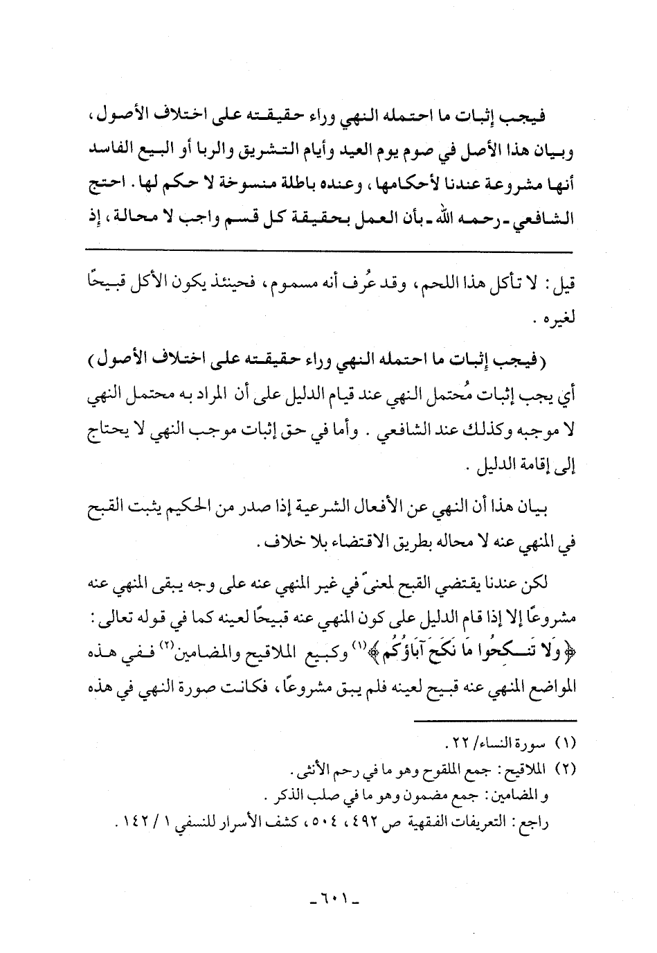(فيجب إثبات ما احتمله النهي وراء حقيقته على اختلاف الأصول) أي يجب إثبات محتمل النهي عند قيام الدليل على أن المراد به محتمل النهي لا موجبه وكذلك عند الشافعي. وأما في حق إثبات موجب النهي لا يحتاج إلى إقامة الدليل.