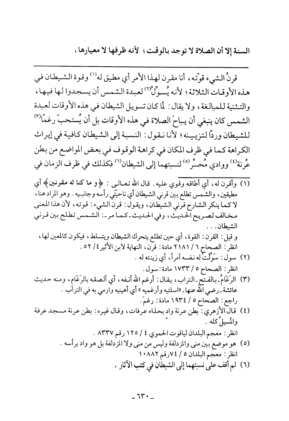 قرن الشيء قوته، أنا مقرن لهذا الأمر أي مطيق له وقوة الشيطان في هذه الأوقات الثلاثة؛ لأنه يسول لعبدة الشمس أن يسجدوا لها فيها، والتثنية للمبالغة، ولا يقال: لما كان تسويل الشيطان في هذه الأوقات لعبدة الشمس كان ينبغي أن يباح الصلاة في هذه الأوقات بل أن يستحب رغمًا للشيطان وردًا لتزيينه؛ لأنا نقول: النسبة إلى الشيطان كافية في إيراث الكراهة كما في ظرف المكان في كراهة الوقوف في بعض المواضع من بطن عرنة ووادي محسر لنسبتهما إلى الشيطان فكذلك في ظرف الزمان في