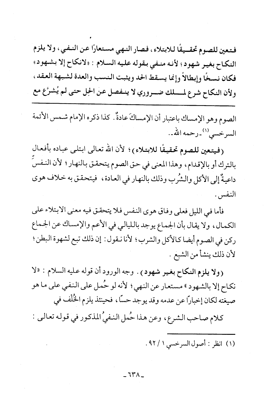 الصوم وهو الإمساك باعتبار أن الإمساك عادة، كذا ذكره الأمام شمس الأئمة السرخسي- رحمه- الله-