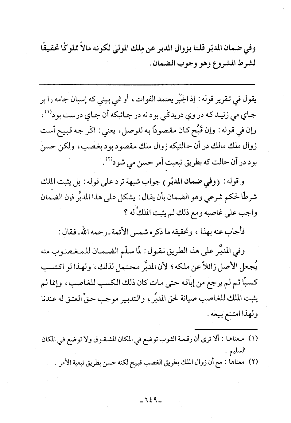 يقول في تقرير قوله: إذا الجبر يعتمد الفوات، أو نمي بيني كه إسبان جامه رابر جاي مي زنيد كه در وي دريدكي بودنه در جائيكه أن جاي درست بود، وإن في قوله: وإن قبح كان مقصودًا به للوصل، يعني: اكر جه قبيح أست زوال ملك المالك در أن حالتيكه زوال ملك مقصود بود بغصب، ولكن حسن بود در آن حالت كه بطريق تبعيت أمر حسن مي شود.