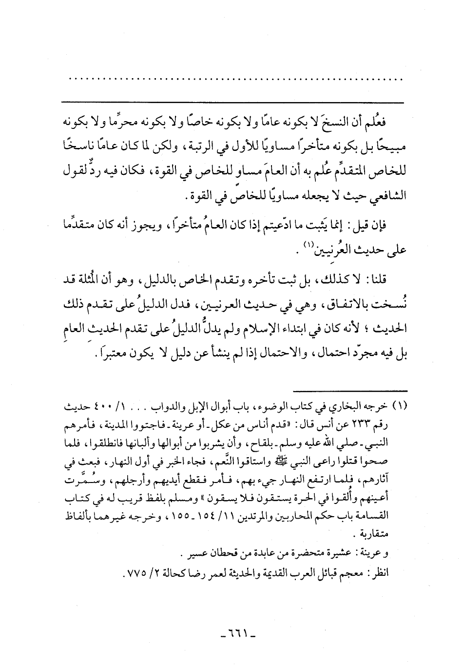 قلنا: لا كذلك، بل ثبت تأخره وتقدم الخاص بالدليل، وهو أن المثلة قد نسخت بالاتفاق، وهي في حديث العرنيين، فدل الدليل على تقدم ذلك الحديث؛ لأنه كان في ابتداء الإسلام ولم يدل الدليل على تقدم الحديث العام بل فيه مجرد احتمال، والاحتمال إذا لم ينشأ عن دليل لا يكون معتبرًا.