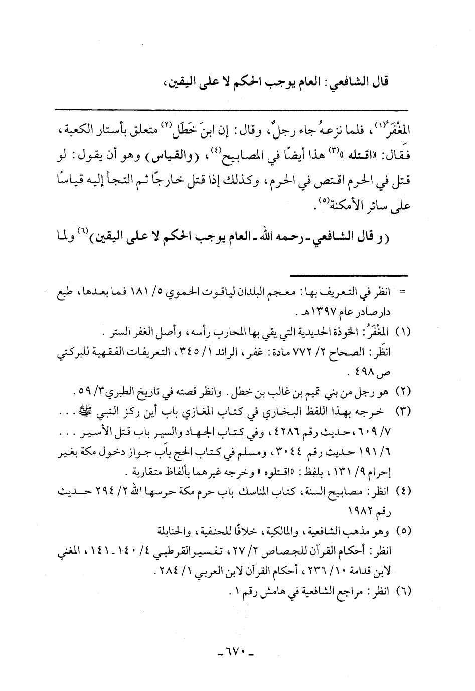 المغفر، فلما نزعه جاء رجل، وقال: إن ابن خطل متعلق بأستار الكعبة، فقال: "اقتله"هذا أيضًا في المصابيح، (والقياس) وهو أن يقول: لو قتل في الحرم اقتص في الحرم، وكذلك إذا قتل خارجًا ثم التجأ إليه قياسًا على سائر الأمكنة.