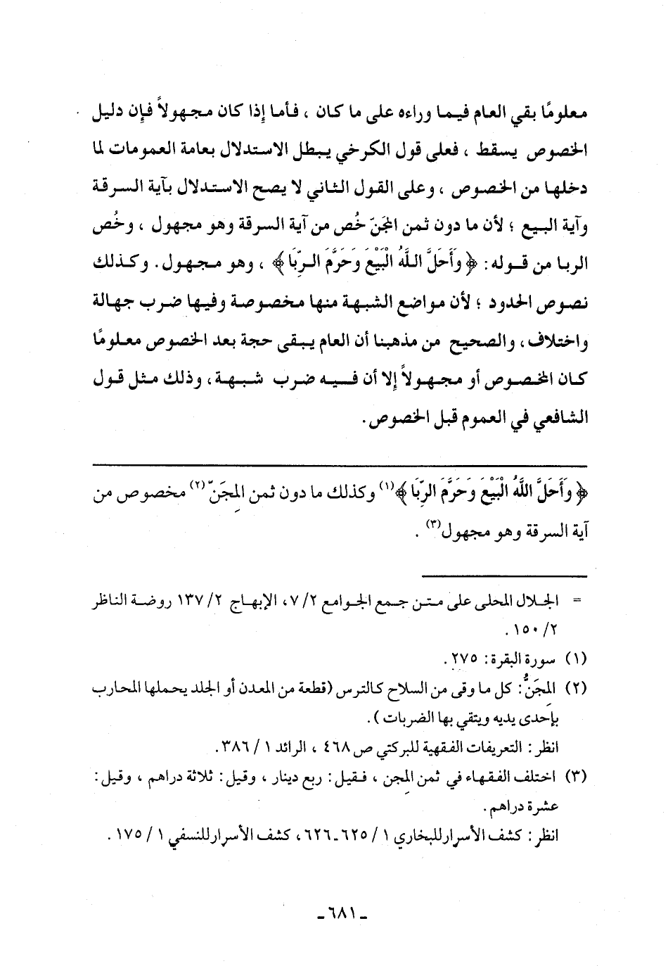 {وَأَحَلَّ اللَّهُ الْبَيْعَ وَحَرَّمَ الرِّبَا} وكذلك ما دون ثمن المجن مخصوص من آية السرقة وهو مجهول.