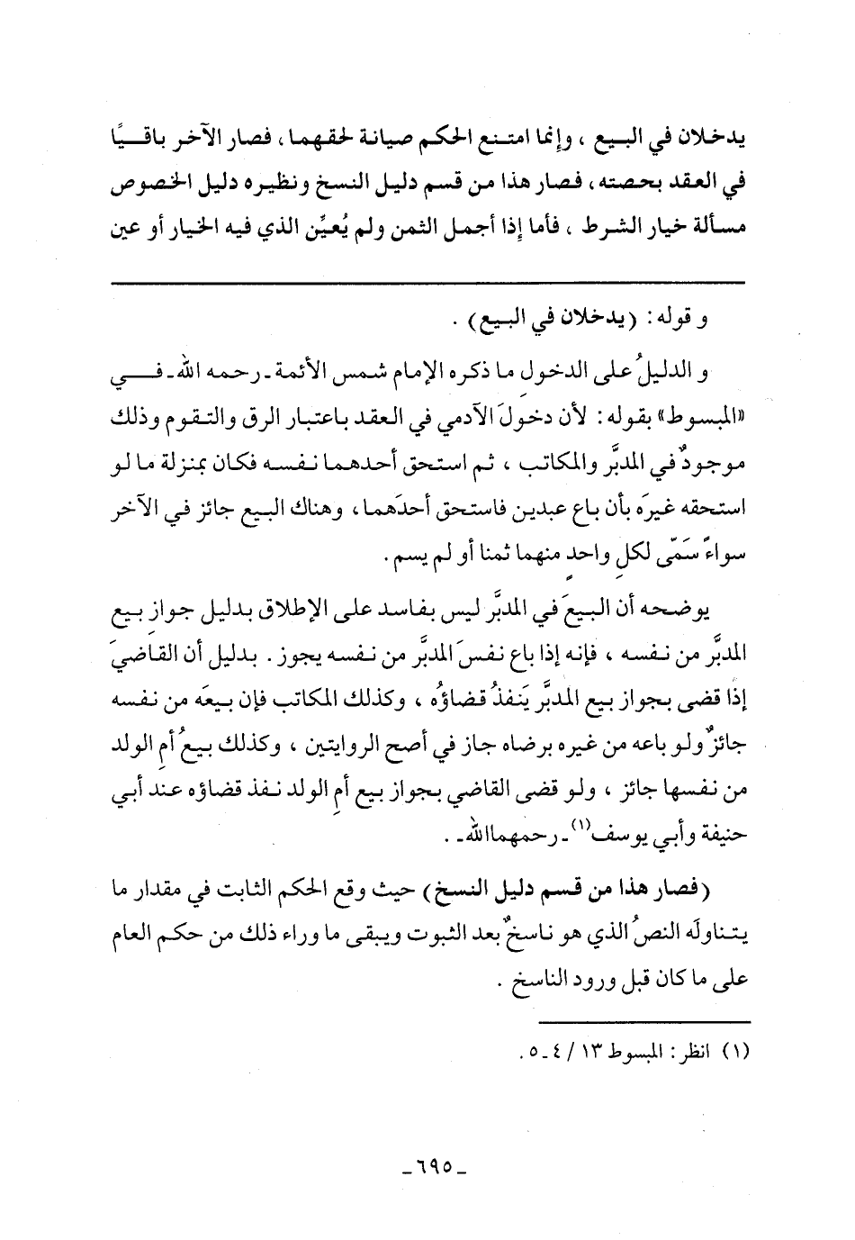 يوضحه أن البيع في المدبر ليس بفاسد على الإطلاق بدليل جواز بيع المدبر من نفسه، فإنه إذا باع نفس المدبر من نفسه يجوز. بدليل أن القاضي إذا قضي بجواز بيع المدبر ينفذ قضاؤه، وكذلك المكاتب فإن بيعه من نفسه جائز ولو باعه من غيره برضاه جاز في أصح الروايتين، وكذلك بيع أم الولد من نفسها جائز، ولو قضى القاضي بجواز بيع أم الولد نفذ قضاؤه عند أبي حنيفة وأبي يوسف- رحمهما الله-.