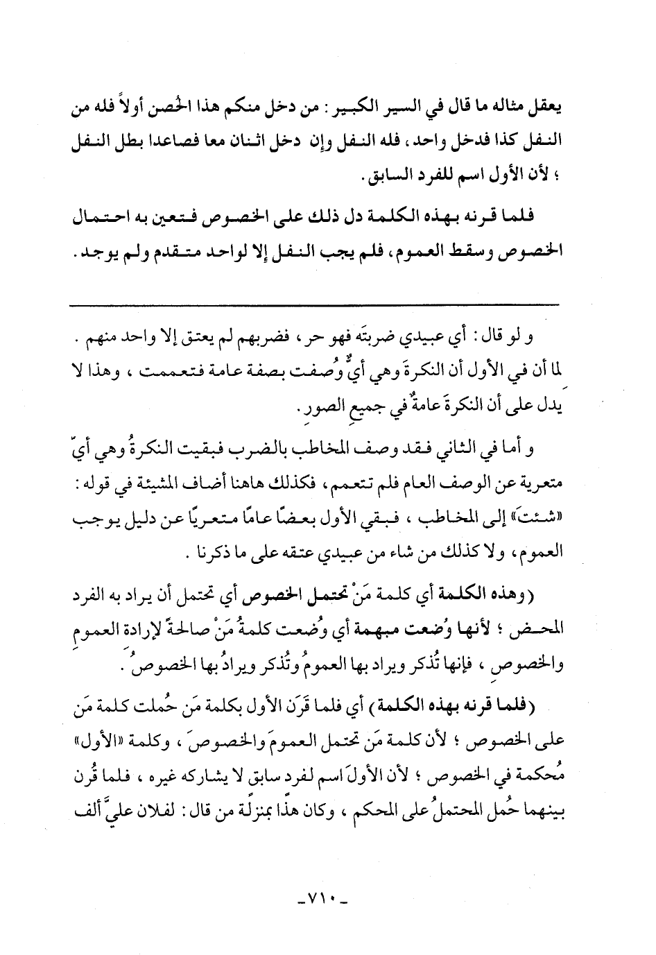 (فلما قرنه بهذه الكلمة) أي فلما قرن الأول بكلمة من حملت كلمة من على الخصوص؛ لأن كلمة من تحتمل العموم والخصوص، وكلمة "الأول" محكمة في الخصوص؛ لأن الأول اسم لفرد سابق لا يشاركه غيره، فلما قرن بينهما حمل المحتمل على المحكم، وكان هذا بمنزلة من قال: لفلان علي ألف