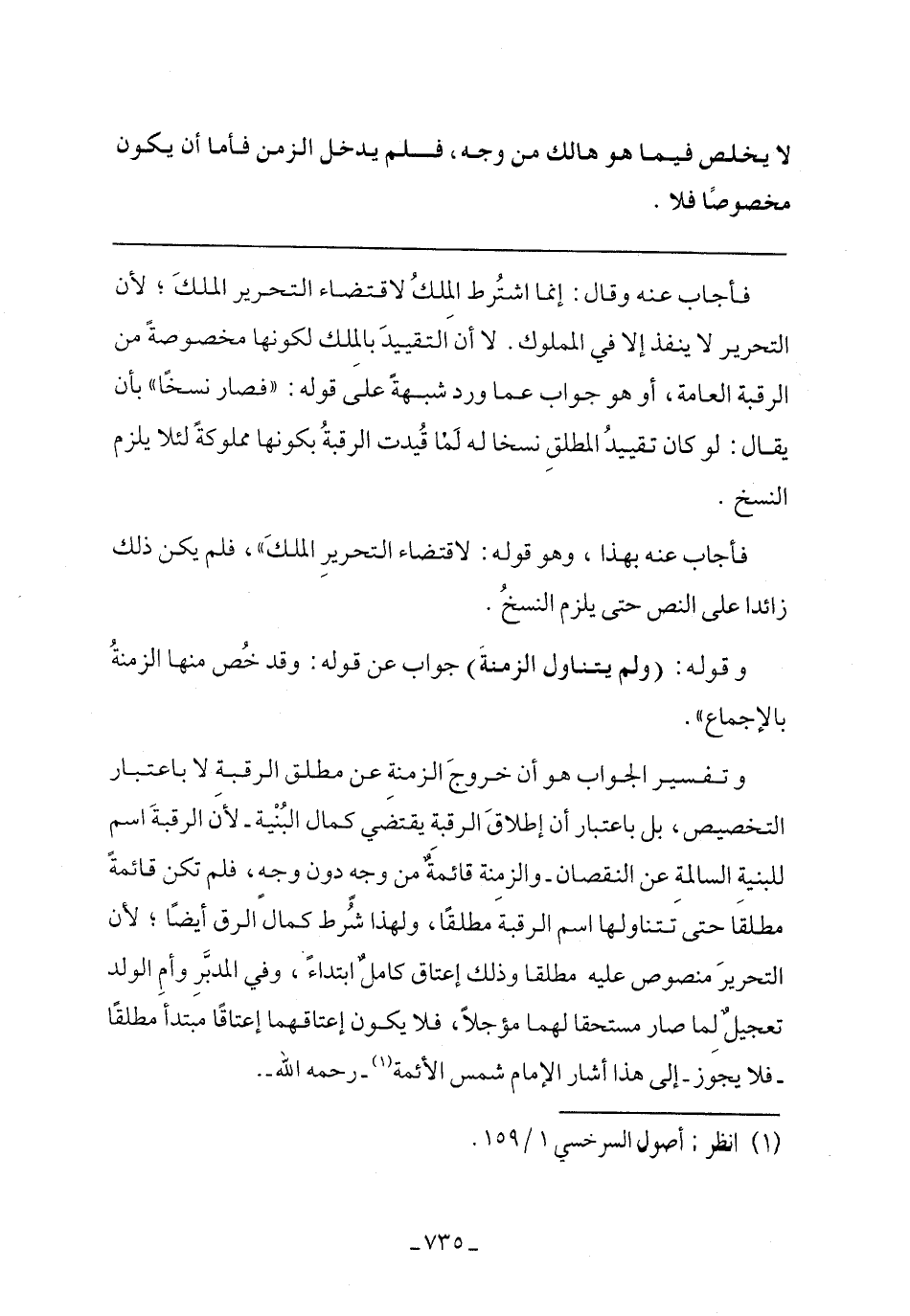 فأجاب عنه وقال: إنما اشترط الملك لاقتضاء التحرير الملك؛ لأن التحرير لا ينفذ إلا في الملوك. لا أن التقييد بالملك لكونها مخصوصة من الرقبة العامة، أو هو جواب عما ورد شبهة على قوله: "فصار نسخًا" بأن يقال: لو كان تقييد المطلق نسخًا له لما قيدت الرقبة بكونها مملوكة لئلا يلزم النسخ.