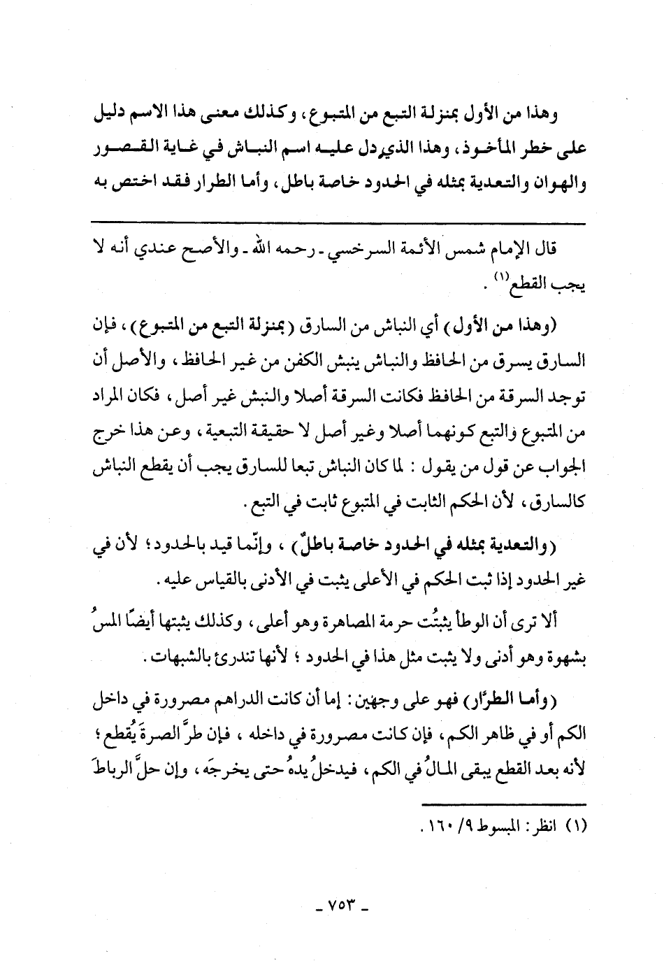 قال الإمام شمس الأئمة السرخسي- رحمه الله- والأصح عندي أنه لا يجب القطع.