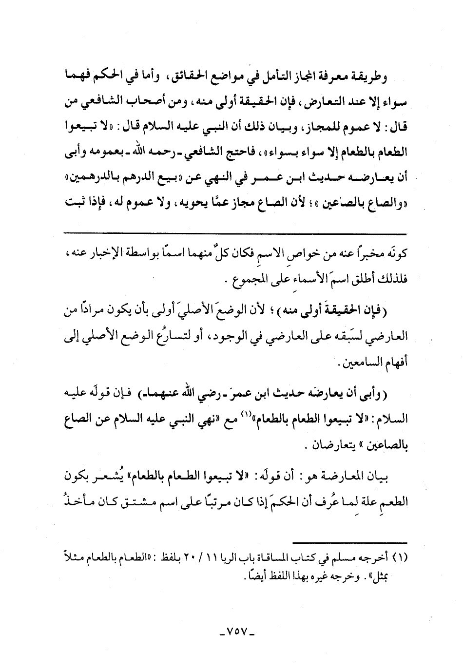 بيان المعارضة هو: أن قوله: "لا تبيعوا الطعام بالطعام" يشعر بكون الطعم علة لما عرف أن الحكم إذا كان مرتبًا على اسم مشتق كان مأخذ