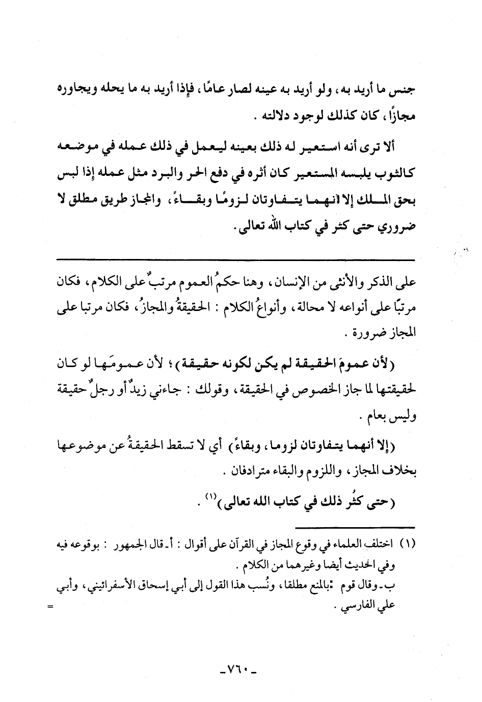 على الذكر والأنثى من الإنسان، وهنا حكم العموم مرتب على الكلام، فكان مرتبًا على أنواعه لا محالة، وأنواع الكلام: الحقيقة والمجاز، فكان مرتبًا على المجاز ضرورة.