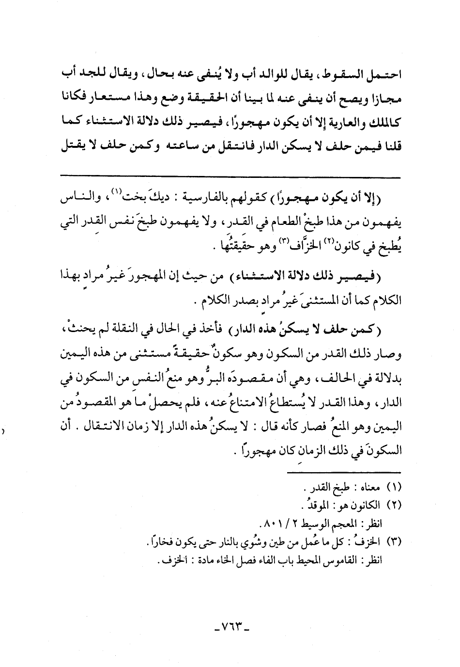 (إلا أن يكون مهجورًا) كقولهم بالفارسية: ديك بخت، والناس يفهمون من هذا طبخ الطعام في القدر، ولا يفهمون طبخ نفس القدر التي يطبخ في كانون الخزاف وهو حقيقتها.