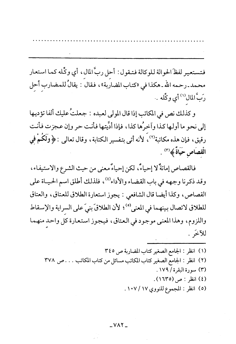 فالقصاص إماتة لا إحياء، لكن إحياء معنى من حيث الشرع والاستيفاء، وقد ذكرنا وجهه في باب القضاء والأداء، فلذلك أطلق اسم الحياة على القصاص، وكذا أيضًا قال الشافعي: يجوز استعارة الطلاق للعتاق، والعتاق للطلاق لاتصال بينهما في المعنى؛ لأن الطلاق بني على السراية والإسقاط واللزوم، وهذا المعنى موجود في العتاق، فيجوز استعارة كل واحد منهما للآخر.