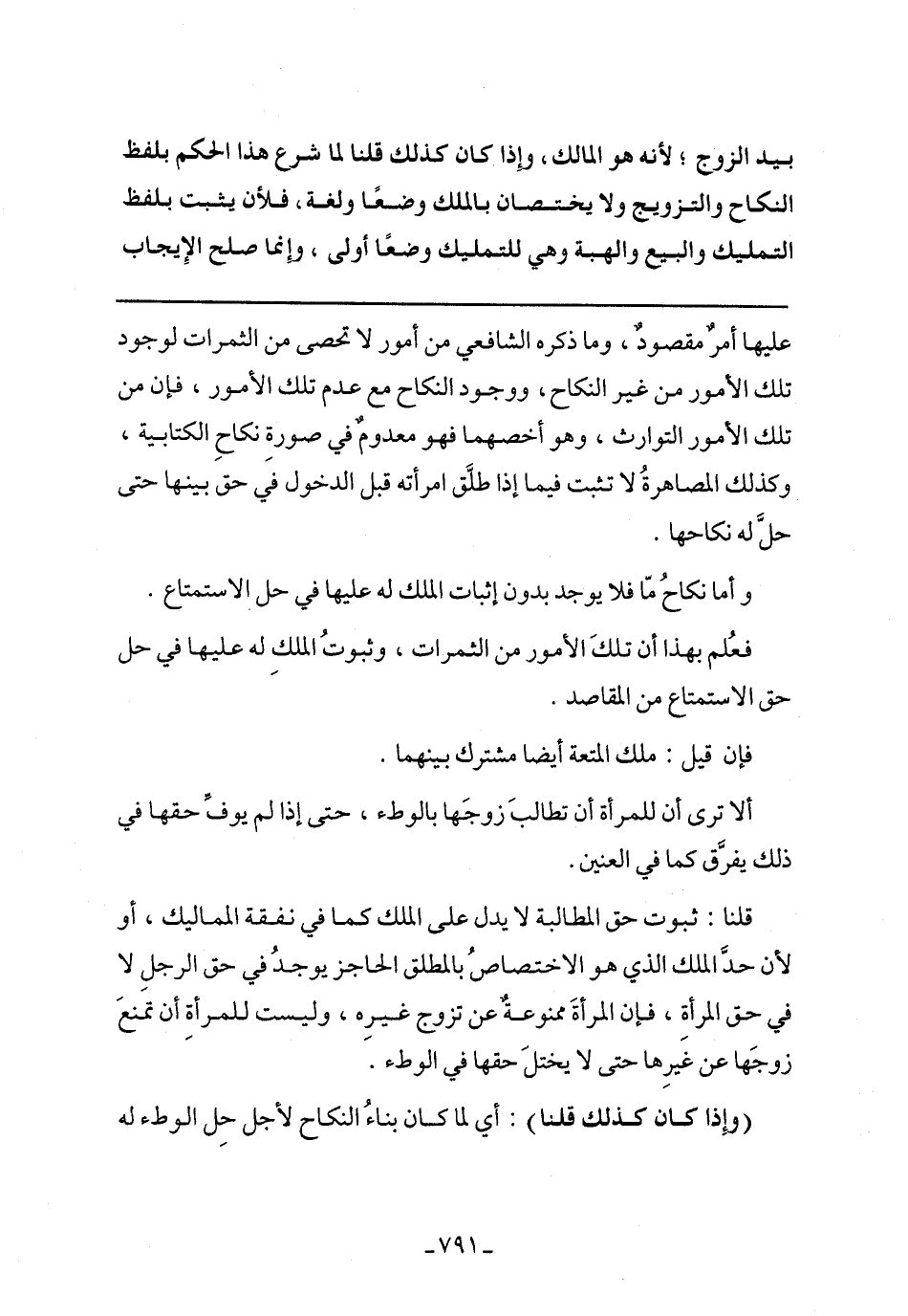 قلنا: ثبوت حق المطالبة لا يدل على الملك كما في نفقة المماليك، أو لأن حد الملك الذي هو الاختصاص بالمطلق الحاجز يوجد في حق الرجل لا في حق المرأة، فإن المرأة ممنوعة عن تزوج غيره، وليست للمرأة أن تمنع زوجها عن غيرها حتى لا يختل حقها في الوطء.