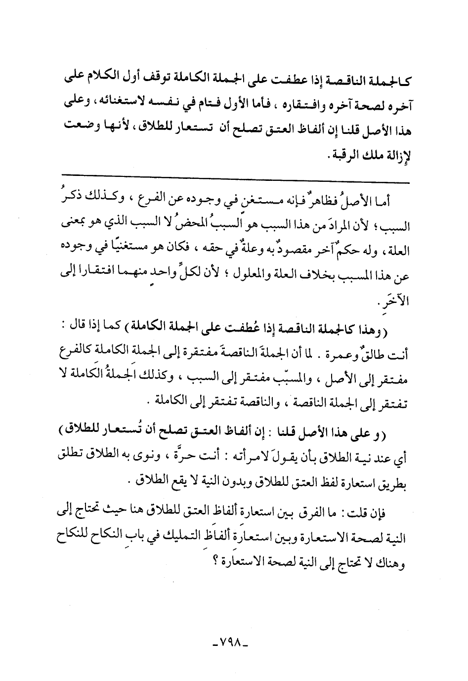 (وهذا كالجملة الناقصة إذا عطفت على الجملة الكاملة) كما إذا قال: أنت طالق وعمرة. لما أن الجملة الناقصة مفتقرة إلى الجملة الكاملة كالفرع مفتقر إلى الأصل، والمسبب مفتقر إلى السبب، وكذلك الجملة الكاملة لا تفتقر إلى الجملة الناقصة، والناقصة تفتقر إلى الكاملة.