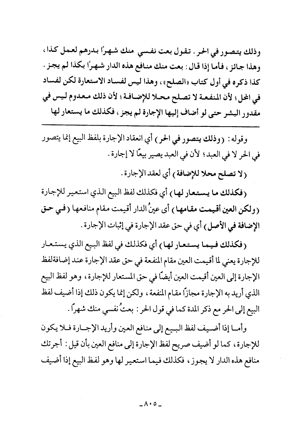 وأما إذا أضيف لفظ البيع إلى منافع العين وأريد الإجارة فلا يكون للإجارة، كما لو أضيف صريح لفظ الإجارة إلى منافع العين بأن قيل: أجرتك منافع هذه الدار لا يجوز، فكذلك فيما استعير لها وهو لفظ البيع إذا أضيف