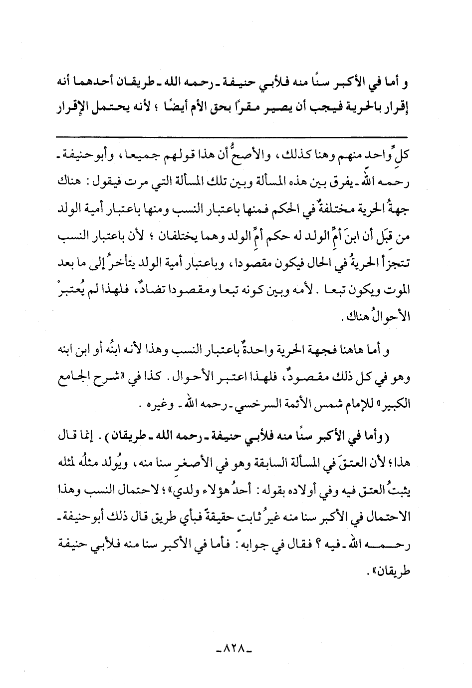 وأما ها هنا فجهة الحرية واحدة باعتبار النسب وهذا لأنه ابنه أو ابن ابنه وهو في كل ذلك مقصود، فلهذا اعتبر الأحوال. كذا في "شرح الجامع الكبير" للإمام شمس الأئمة السرخسي- رحمه الله- وغيره.