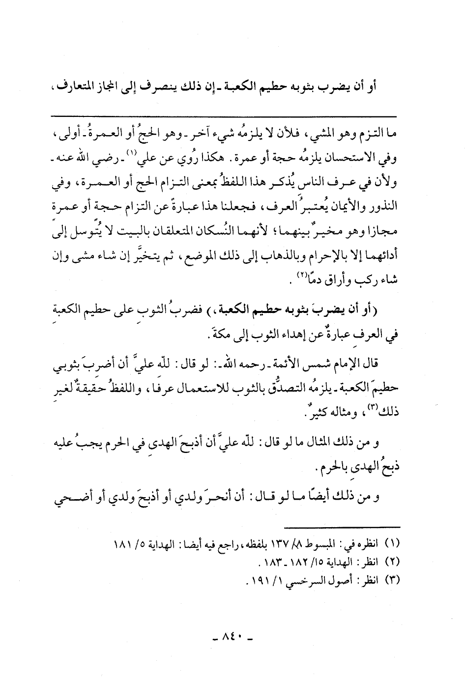 قال الإمام شمس الأئمة - رحمه الله. لو قال: لله علي أن أضرب بثوبي حطيم الكعبة- يلزمه التصدق بالثوب للاستعمال عرفا، واللفظ حقيقة لغير ذلك، ومثاله كثير.