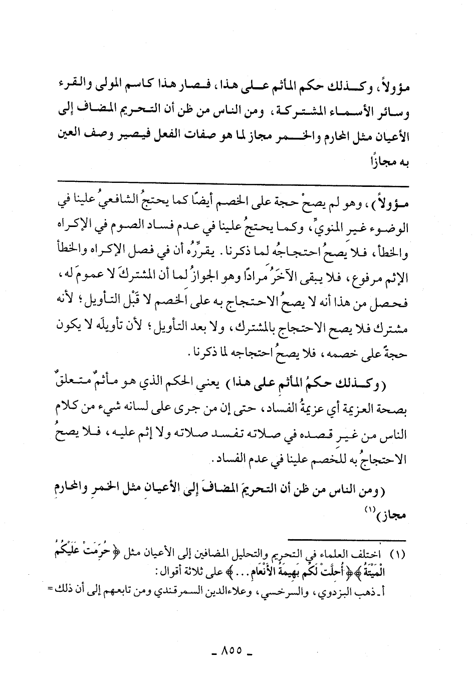 (وكذلك حكم المأثم على هذا) يعني الحكم الذي هو مأثم متعلق بصحة العزيمة أي عزيمة الفساد، حتى إن من جرى على لسانه شيء من كلام الناس من غير قصده في صلاته تفسد صلاته ولا إثم عليه، فلا يصح الاحتجاج به للخصم علينا في عدم الفساد.