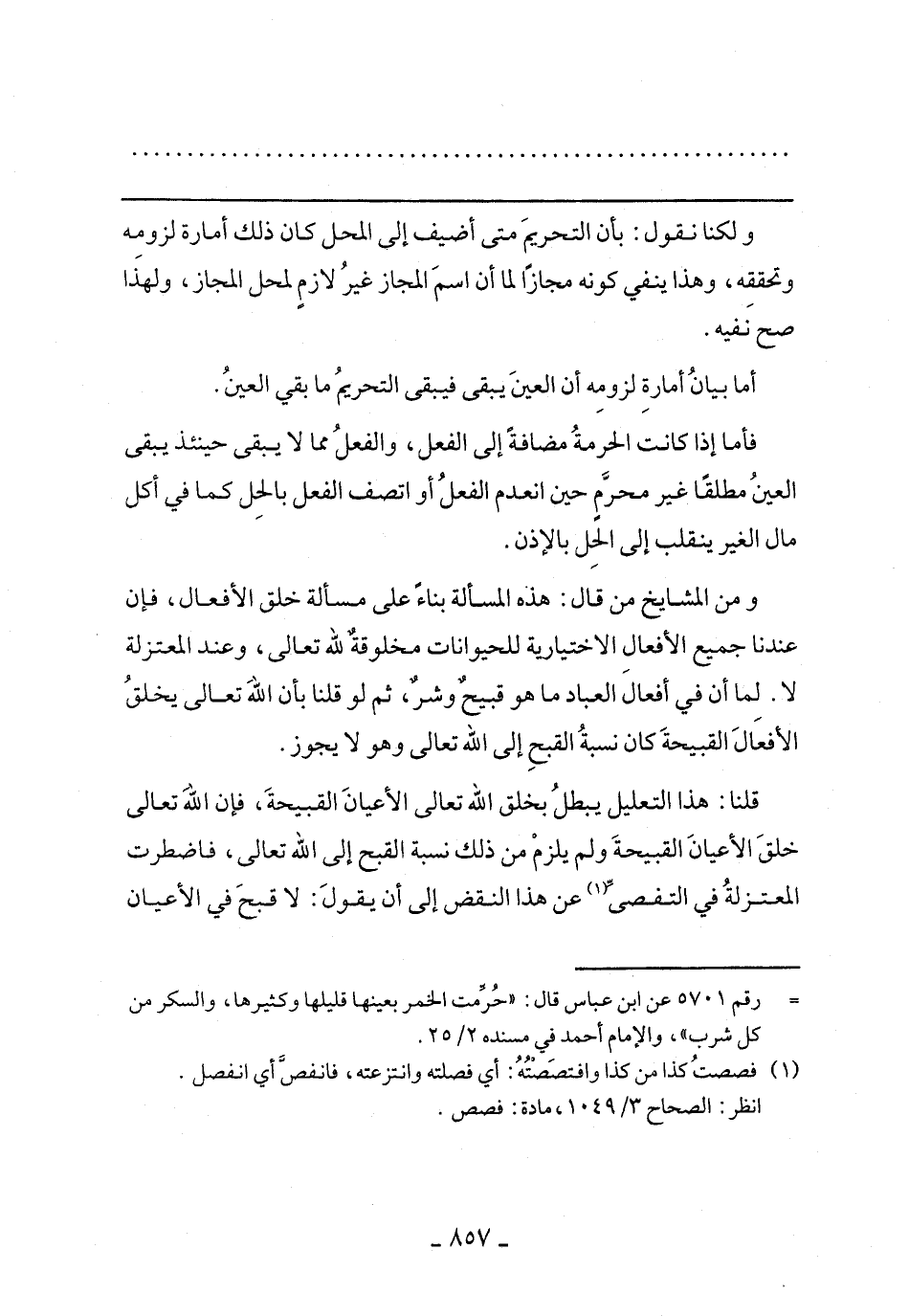 قلنا: هذا التعليل يبطل بخلق الله تعالى الأعيان القبيحة، فإن الله تعالى خلق الأعيان القبيحة ولم يلزم من ذلك نسبة القبح إلى الله تعالى، فاضطرت المعتزلة في التفصى عن هذا النقض إلى أن يقول: لا قبح في الأعيان