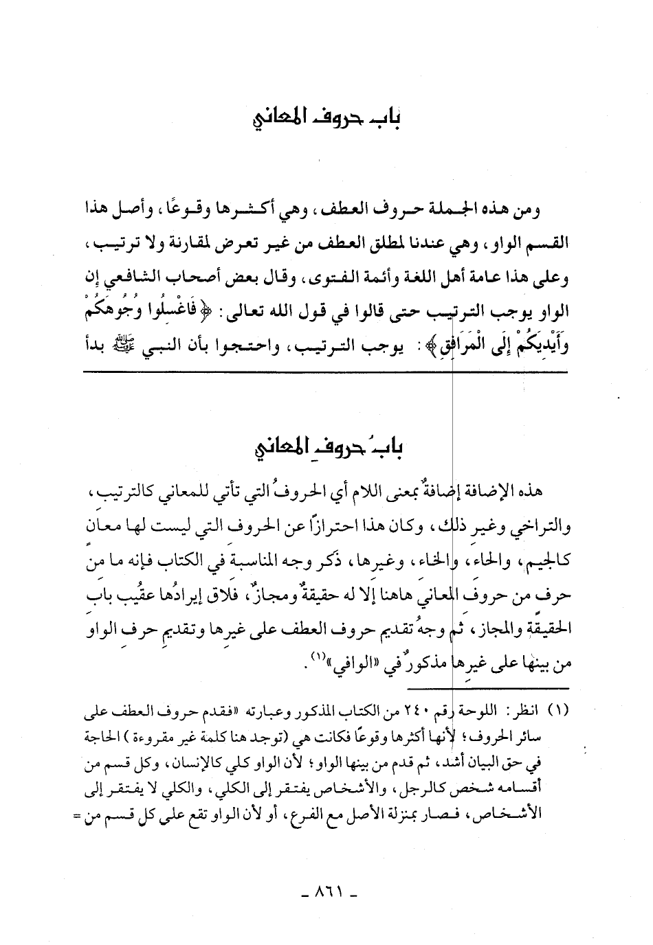 هذه الإضافة إضافة بمعنى اللام أي الحروف التي تأتي للمعني كالترتيب والتراخي وغير ذلك، وكان هذا احترازا عن الحروف التي ليست لها معان كالجيم، والحاء، والخاء، وغيرها، ذكر وجه المناسبة في الكتاب فإنه ما من حرف من حروف المعاني ها هنا إلا له حقيقة ومجاز، فلاق إيرادها عقيب باب الحقيقة والمجاز، ثم وجه تقديم حروف العطف على غيرها وتقديم حرف الواو من بينها على غيرها مذكور في "الوافي".