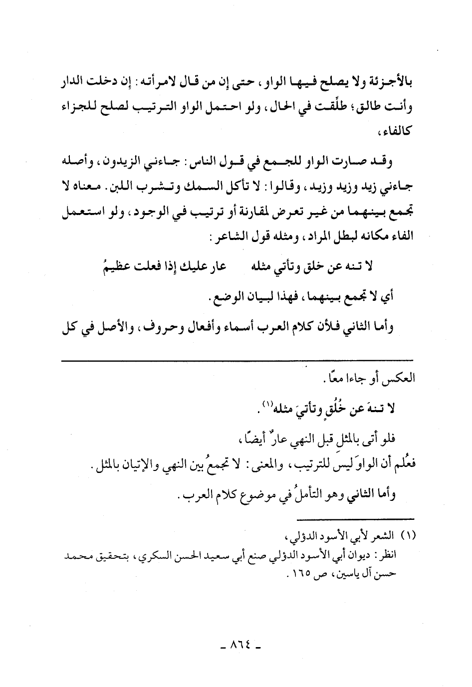فعلم أن الواو ليس للترتيب، والمعنى: لا تجمع بين النهي والإتيان بالمثل.