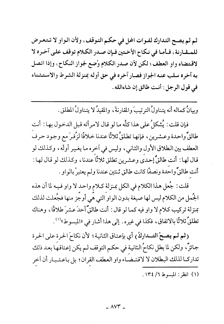 فإن قلت: يشكل على هذا كله ما لو قال لأمرأته قبل الدخول لها: أنت طالق وحد وعشرين، فإنها تطلق ثلاثا عندنا خلافا لزفر مع وجود حرف العطف بين الطلاق الأول والثاني، وليس في آخره ما يغير أوله، وكذلك لو قال لها: أنت طالق إحدى وعشرين تطلق ثلاثا عندنا، وكذلك لو قال لها: أنت طالق واحدة ونصفا كانت طالق ثنتين عندنا ولم يعتبر بالواو.